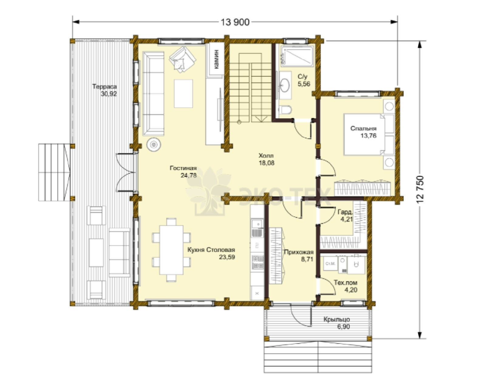 Большой дом с террасой, 5 жилыми комнатами
