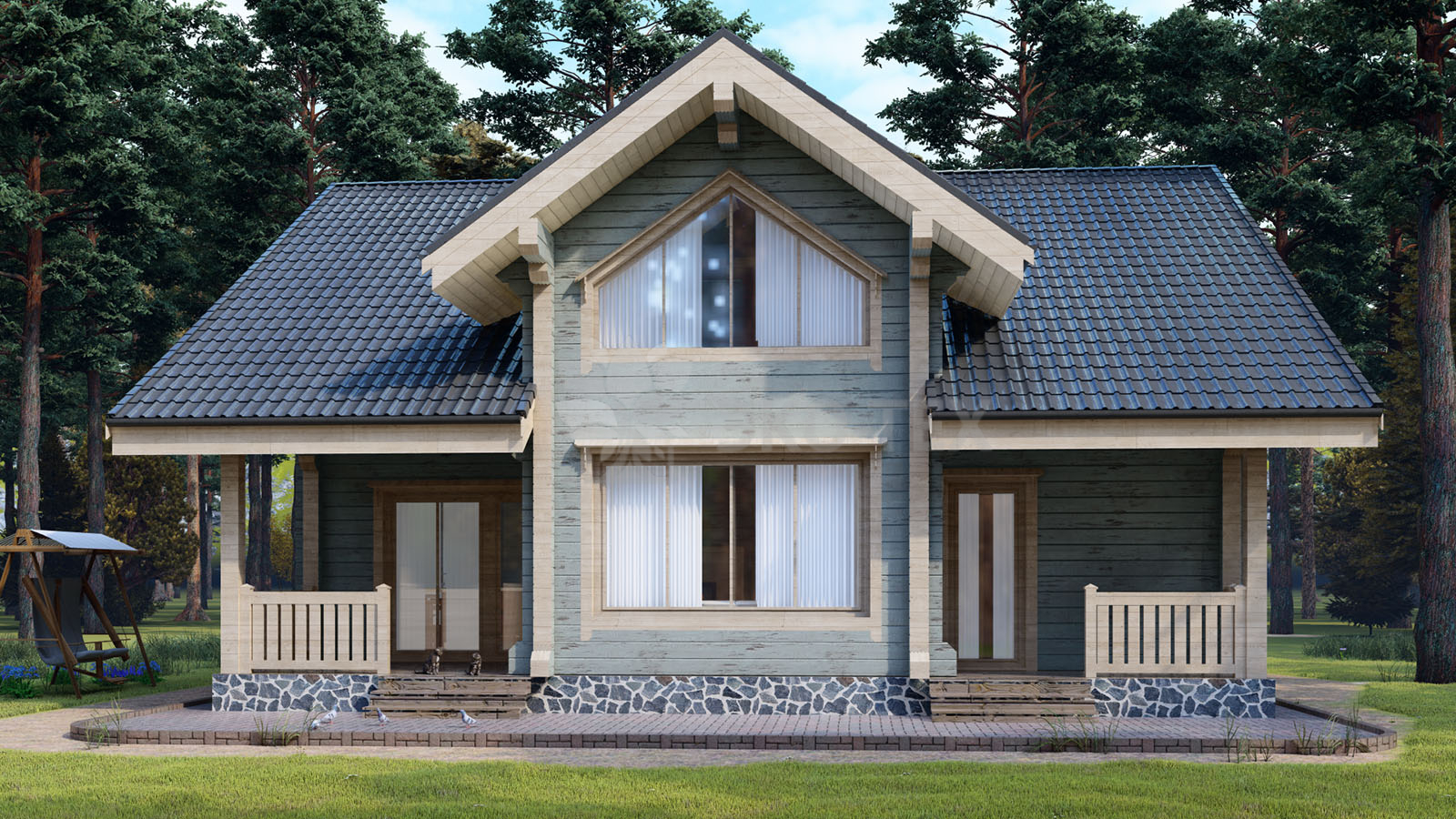 Двухэтажный дом с террасой,материал клееный брус