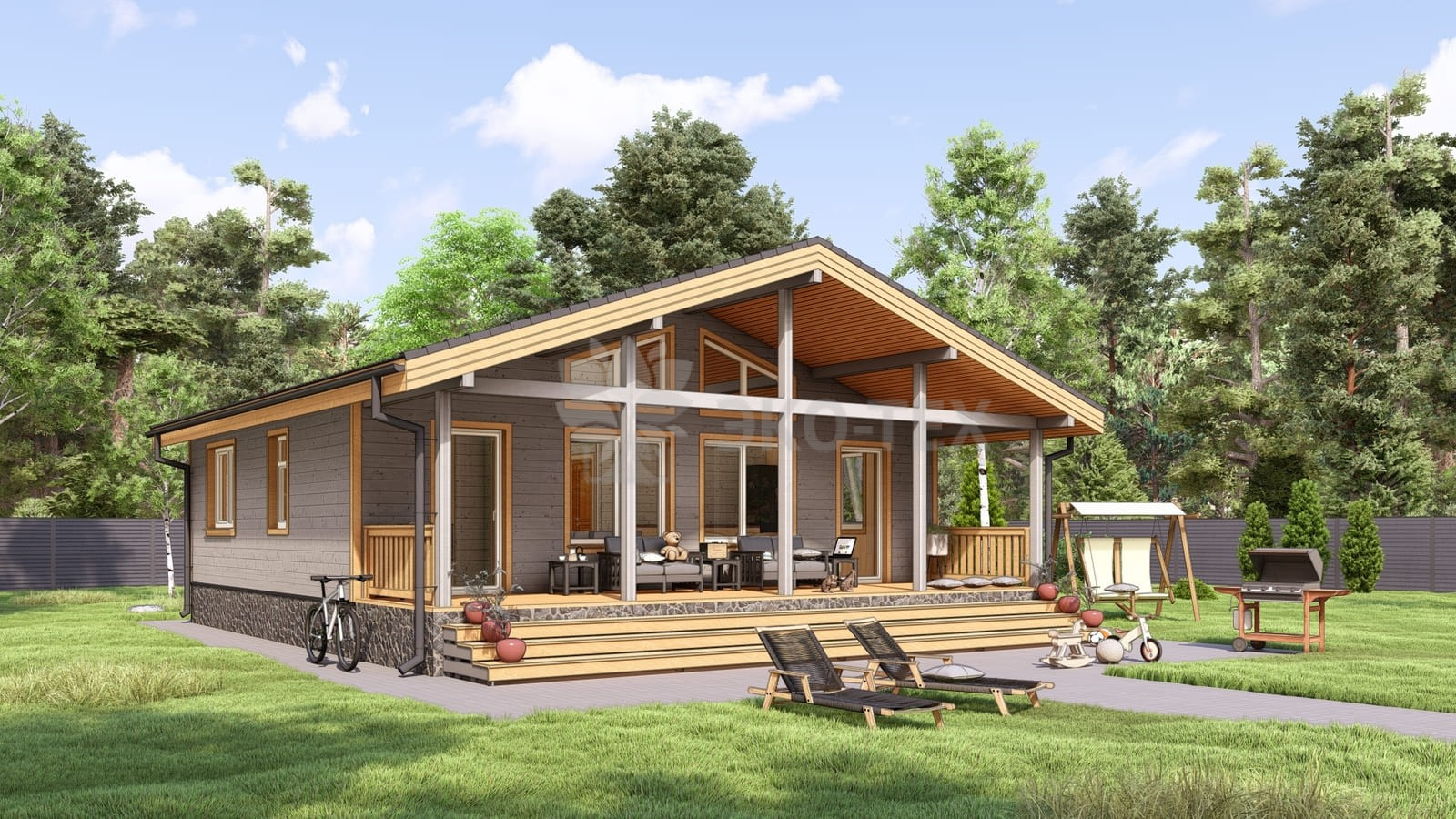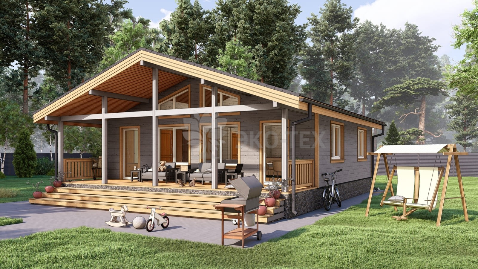 Одноэтажный дом для постоянного проживания, большая гостиная, 2 спальни