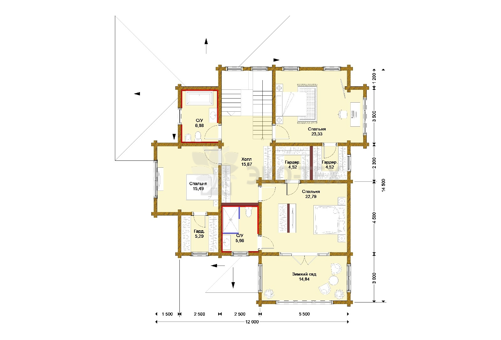 Двухэтажный элитный дом с сауной и зимним садом