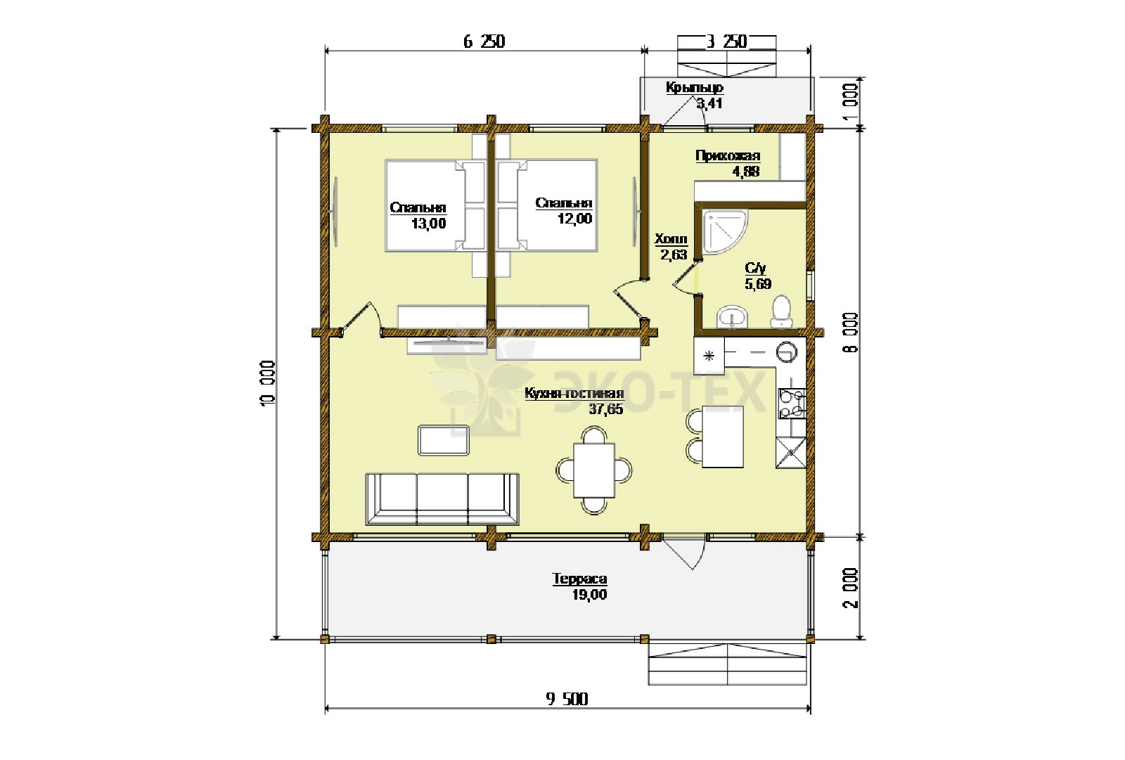 Одноэтажный дом с террасой с удобной планировкой