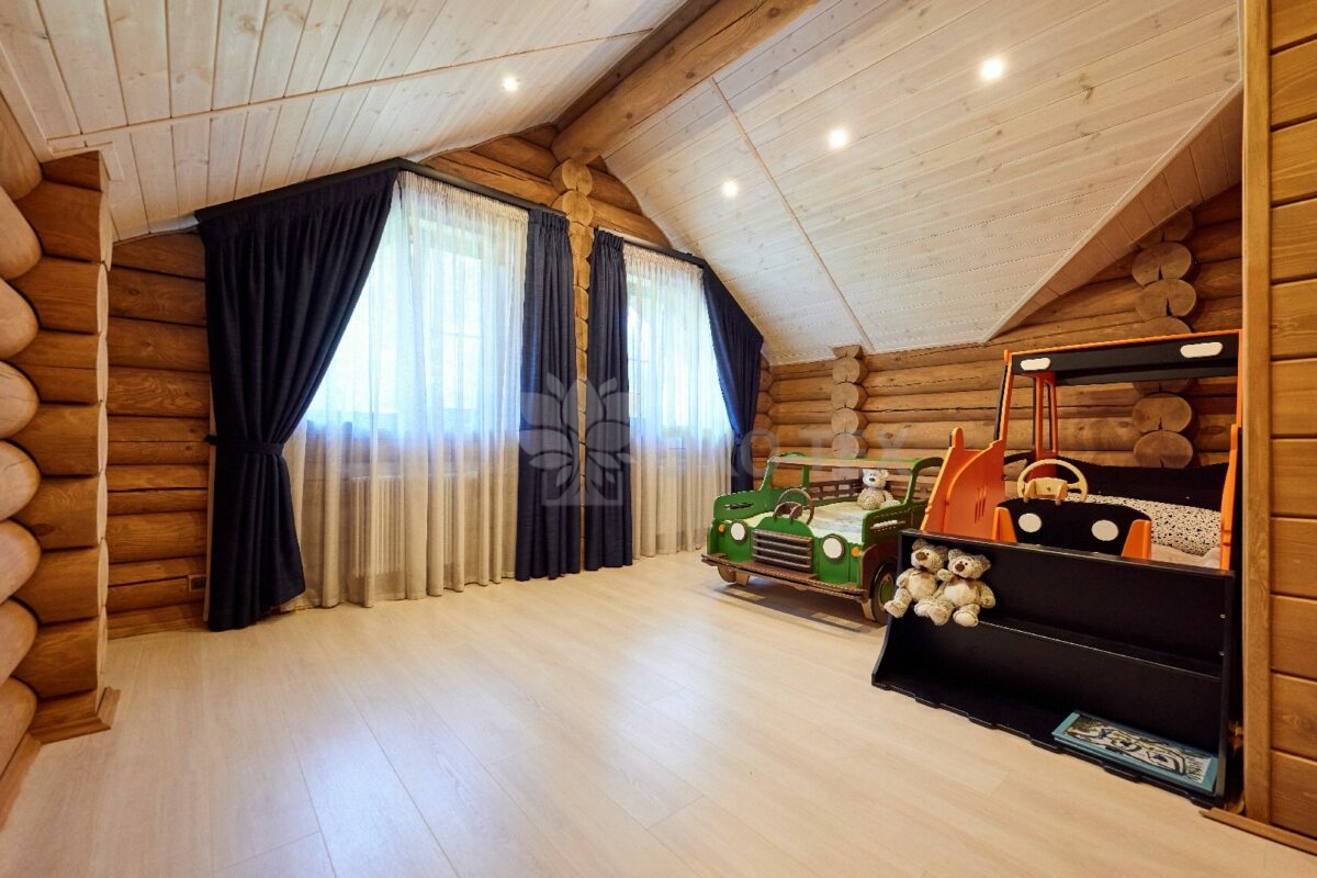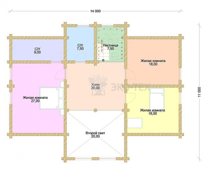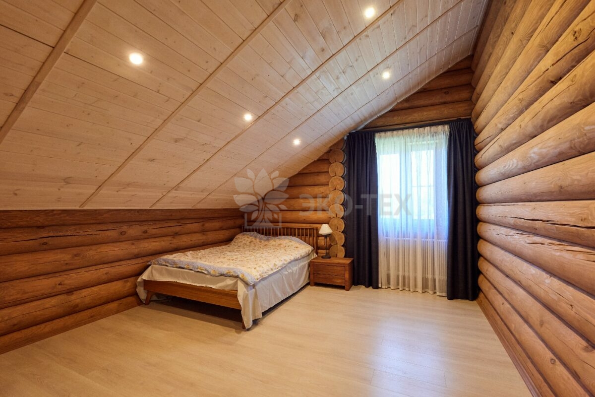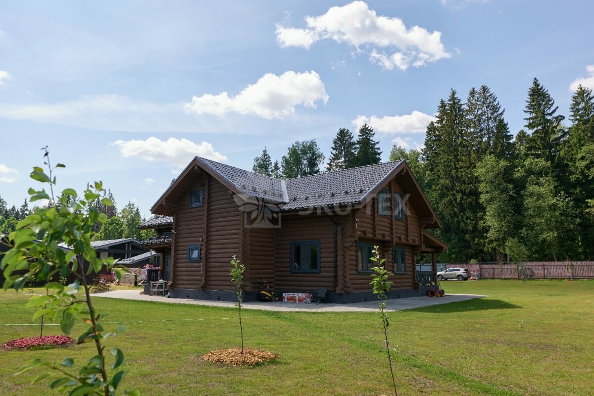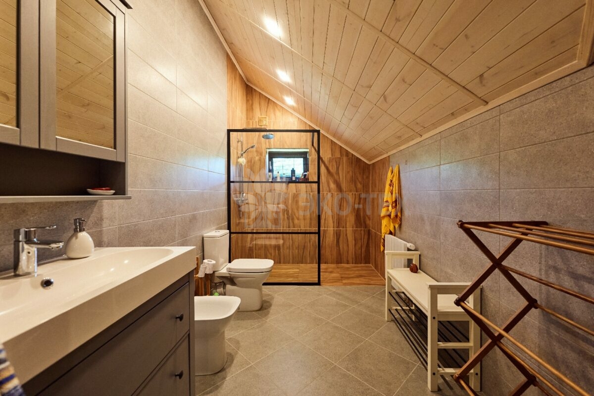 Величественный фасад украшен огромными окнами, а технология второй свет — всегда признак богатства и роскоши владельца. Красивый естественный рисунок живого дерева, из которого выполнен дом, идеально вписывается в любой окружающий ландшафт. Большая просторная терраса является естественным продолжением дома и в тёплое время года позволяет проводить досуг на открытом воздухе. .