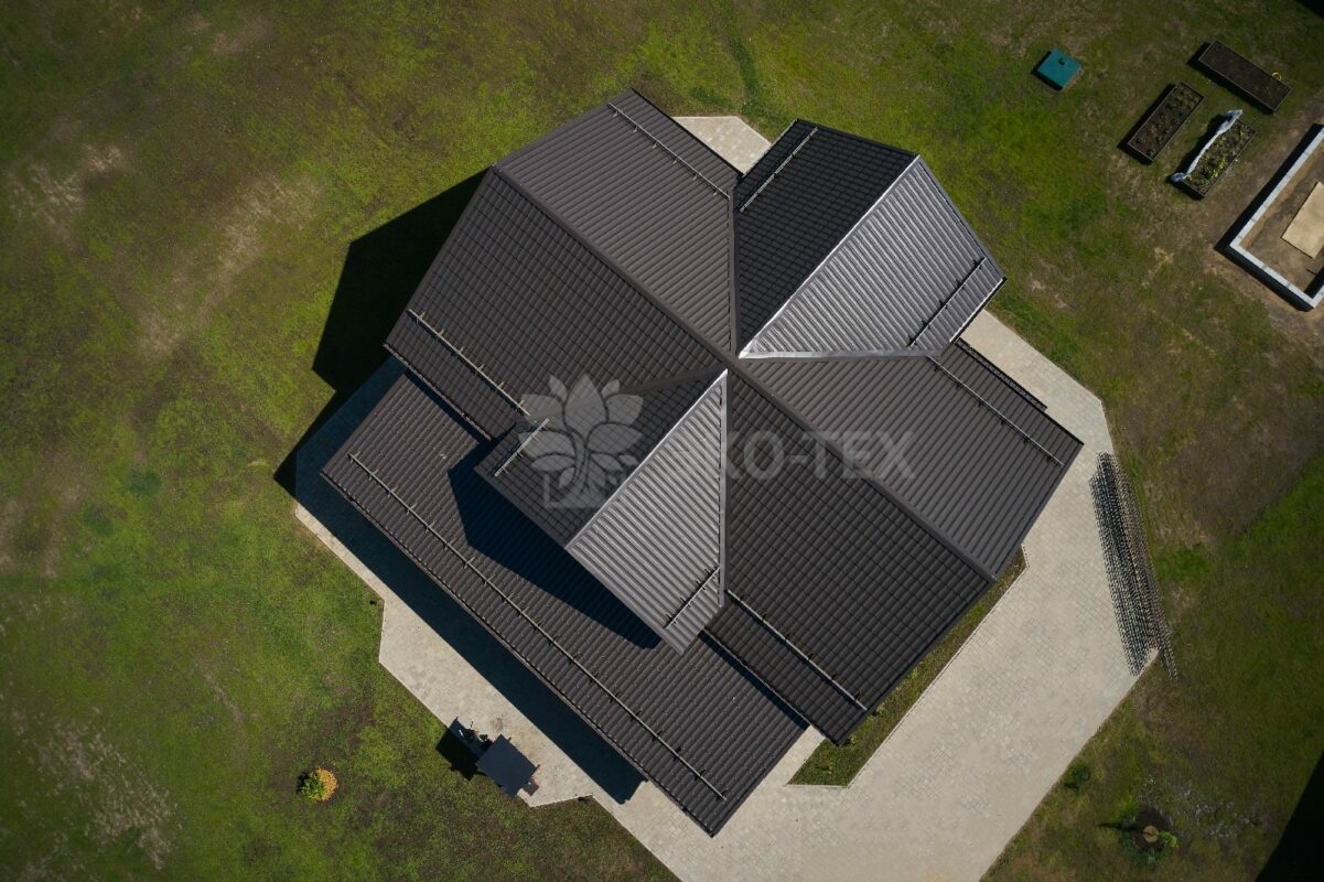Сложноскатнаякрыша из современных материалов обеспечивают строению надёжную защиту, как от непогоды,так и от ярких солнечных лучей. Скаты крыши рассчитаны таким образом, чтобы на них не скапливались осадки. Кровельные материалы обеспечивают сохранение микроклимата ивысокий уровень звукоизоляции.