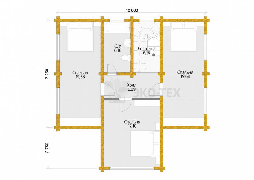 Проконсультироваться по проектуНа второй этаж ведет удобная лестница с широкими перилами, с которой мы попадаем в общий холл.