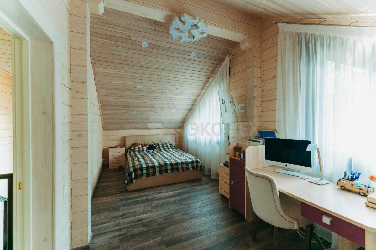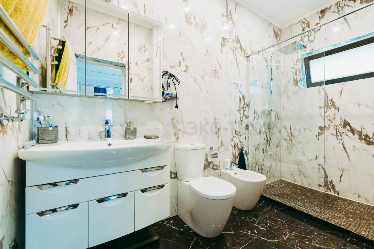 Второй этаж оснащен собственным санузлом с душевой кабиной.