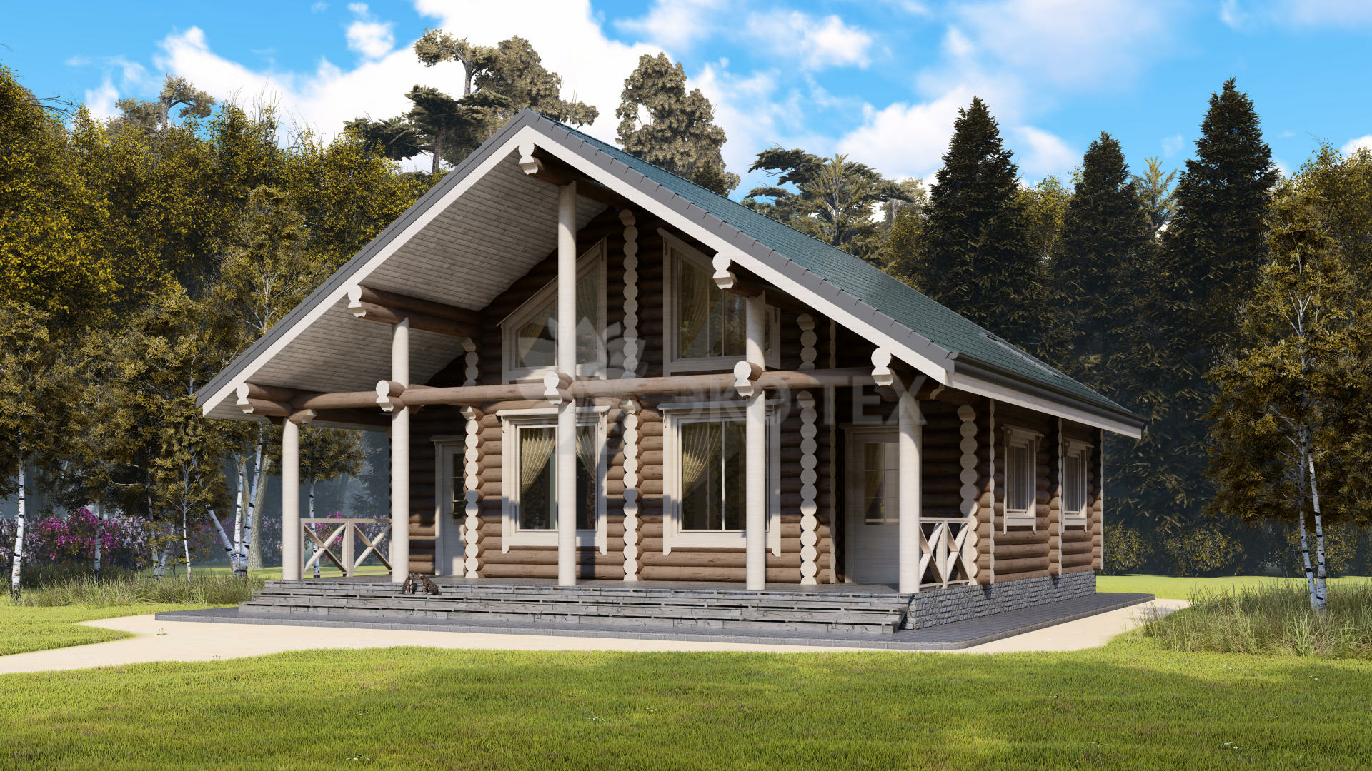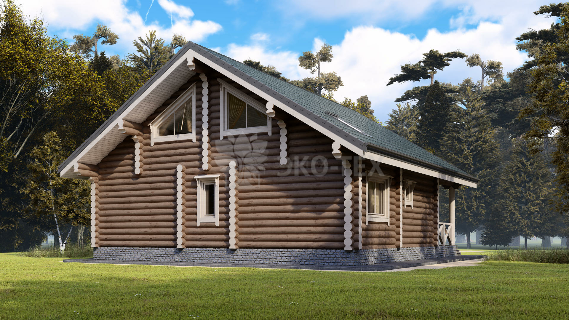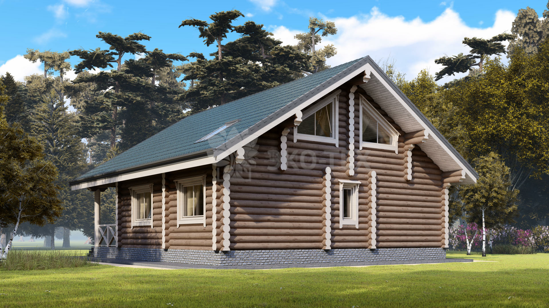 Двухэтажный дом лофт из бревна с большой террасой, второй свет