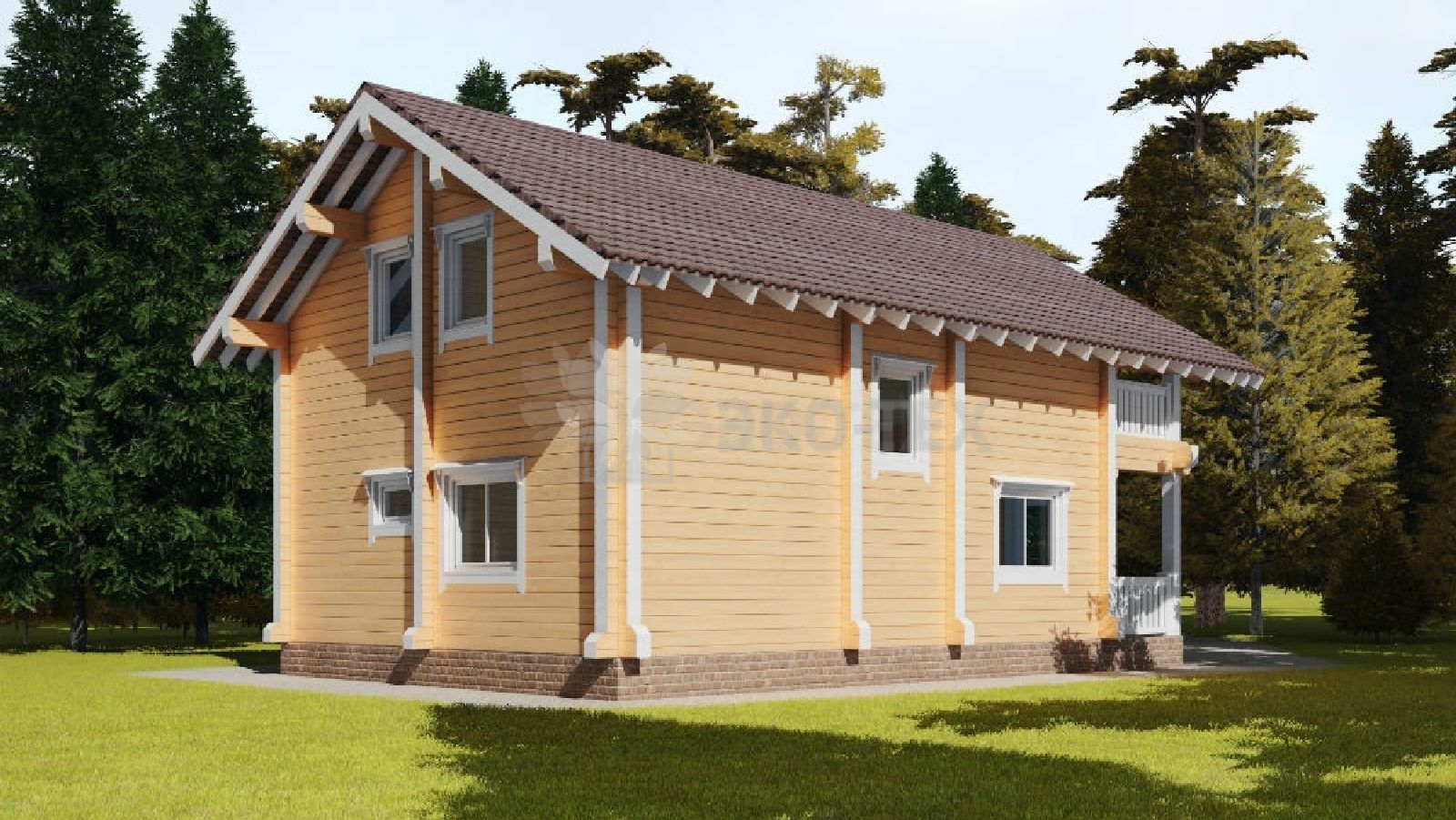 Двухэтажный дом с удобной планировкой, материал клееный брус