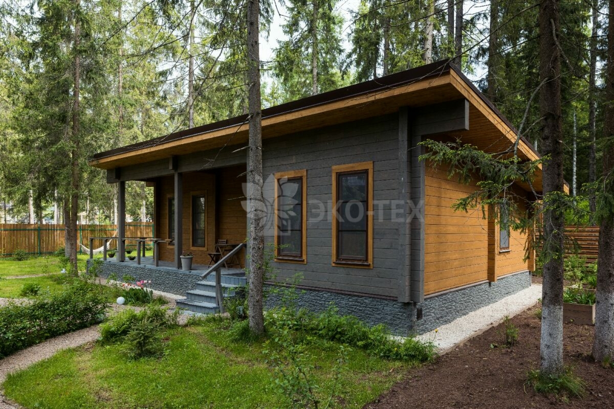 Одноэтажный уютный дом, построенный по проекту Троицк, из клеёного бруса легко может стать воплощением вашей мечты о собственном доме в реальность.