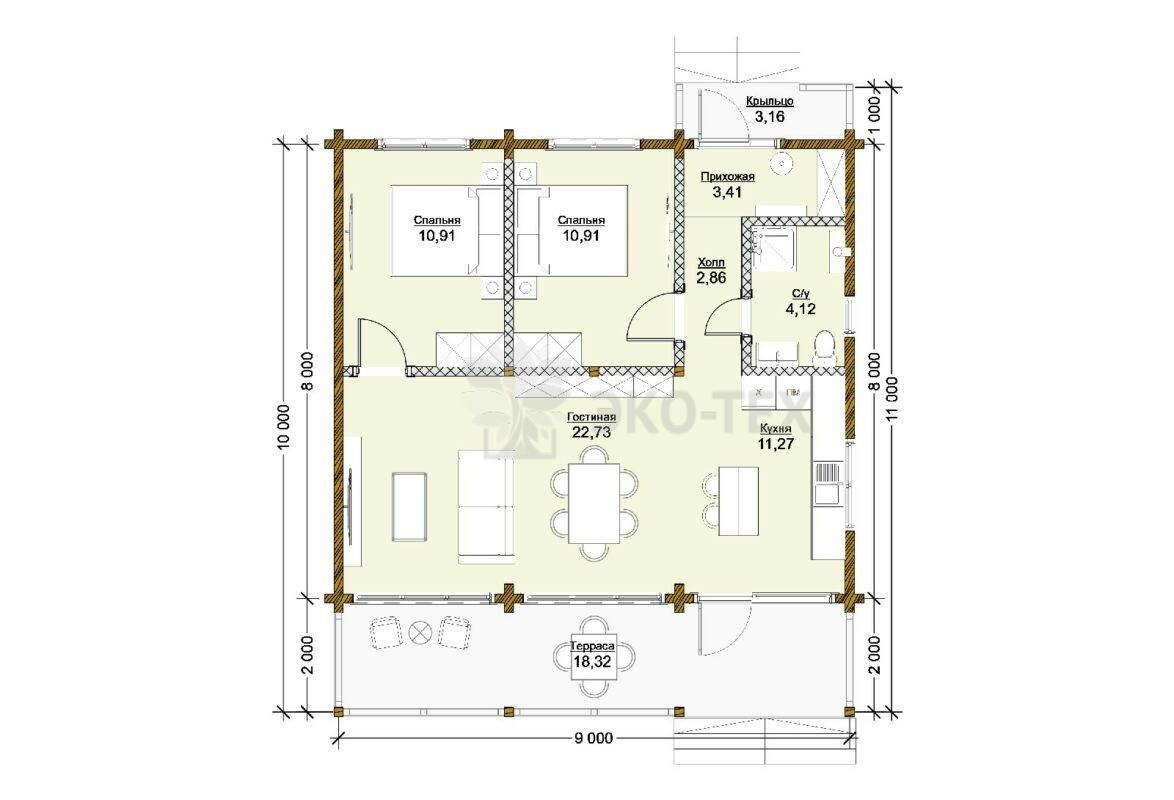 Габариты: 9х11 м