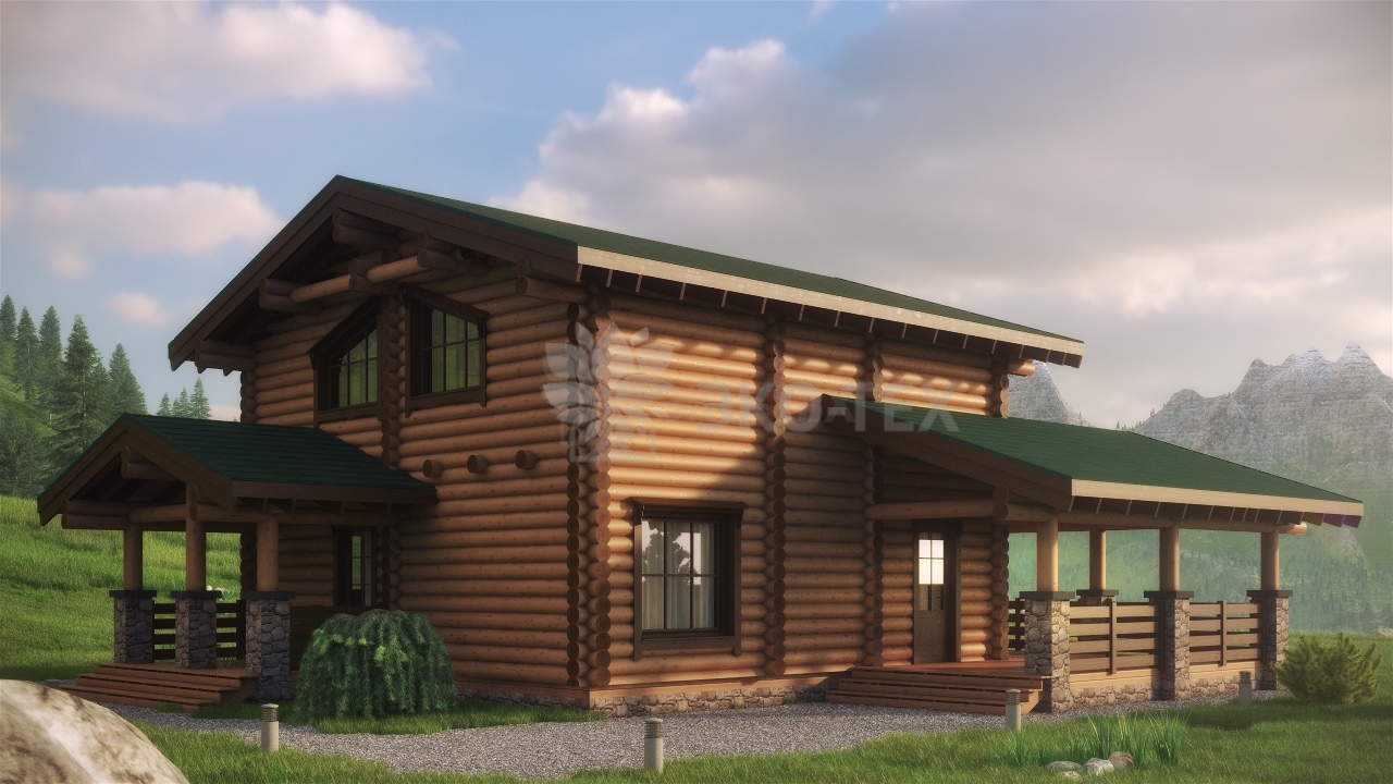 Многоплановая уютная композиция дома и террас