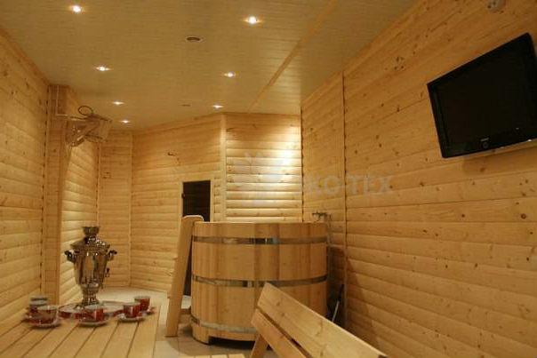 Особый подход требуется при обустройстве бани. Использование исключительно натуральных средств позволяет создать условия естественной вентиляции. Древесина обладает пористой структурой, что идеально подходит для интенсивности воздухопотоков в пределах моечного и парного помещений. Фитонциды, которые источаются от нагревающегося материала, служат естественным антисептиком: при появлении сырости грибковые поражения оказываются нейтрализованными. При проектировании бани все помещения располагаются таким образом, чтобы воздухотопок распространял тепло или выводил из помещений влажный воздух. С этой целью оконные и дверные проемы конструируются компактными (для уменьшения теплопотерь).