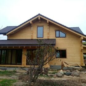 Это может быть оцилиндрованное бревно диаметром от 18 до 42 см, бревно ручной рубки диаметром до 1 метра или клееный брус различного сечения.