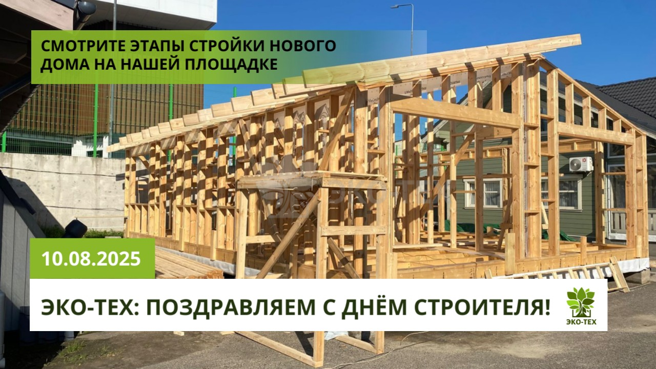 Сегодня мы поздравляем всех, кто каждый день возводит дома и делает жизнь людей уютнее. С Днём строителя от всей команды Экотехстрой!