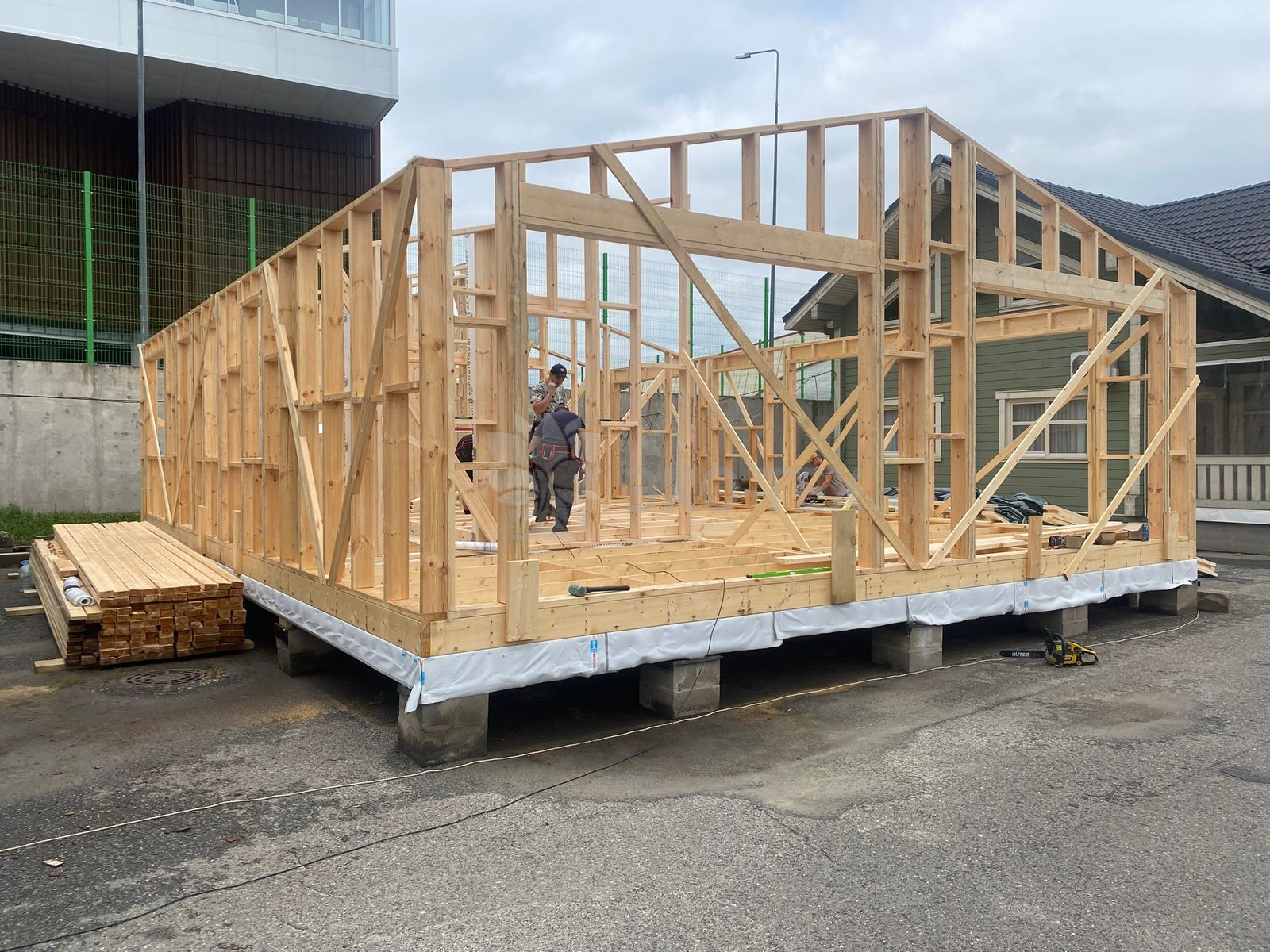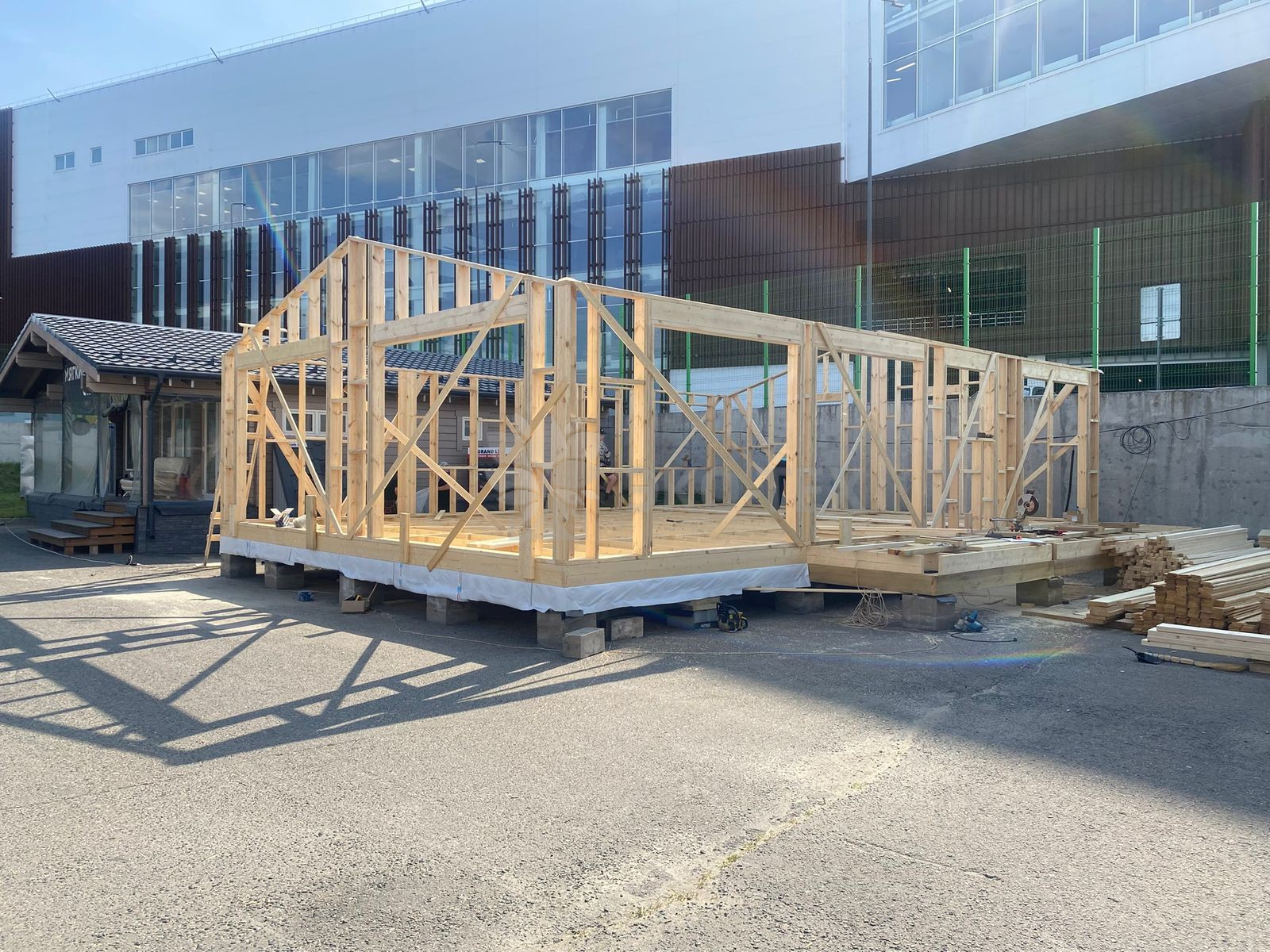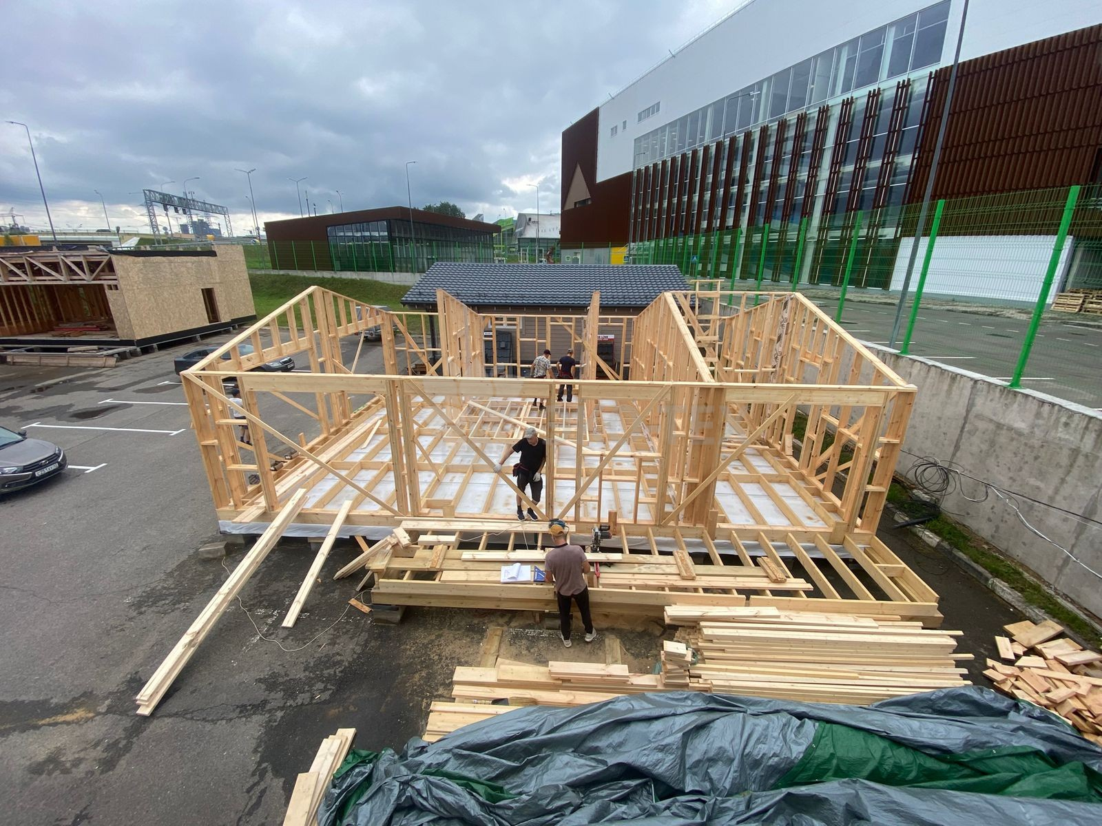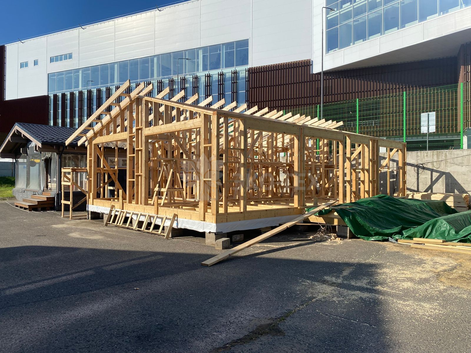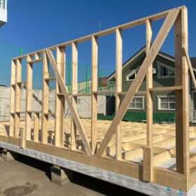 Сегодня мы подготовили для вас небольшой фотоотчёт о строительстве нового каркасного дома на нашей выставочной площадке. На этих снимках можно увидеть ключевые этапы работ: от возведения каркаса до оформления фасада.