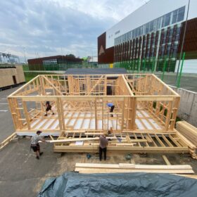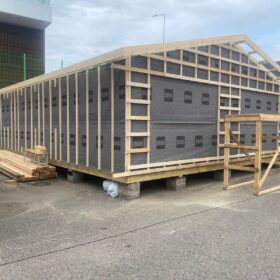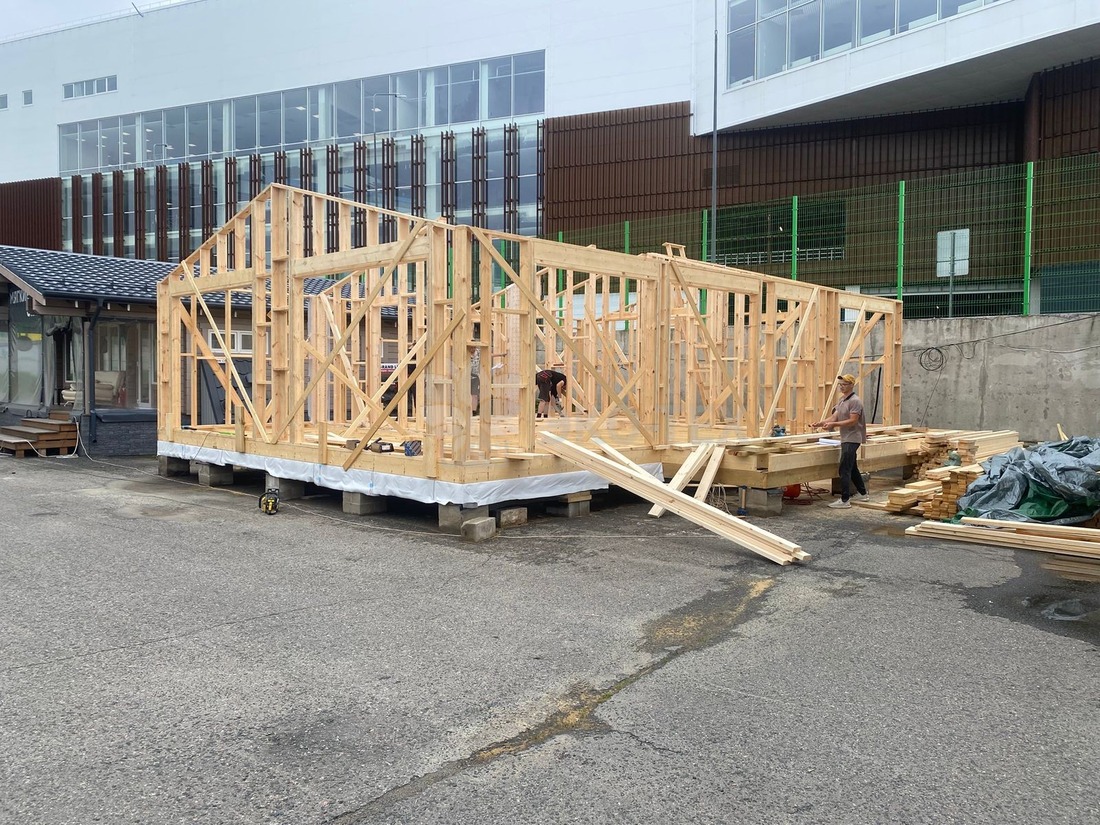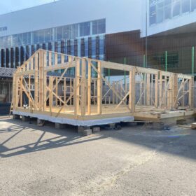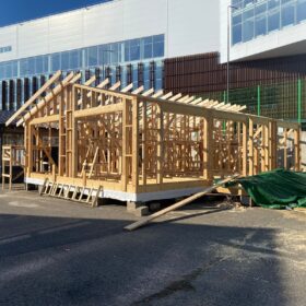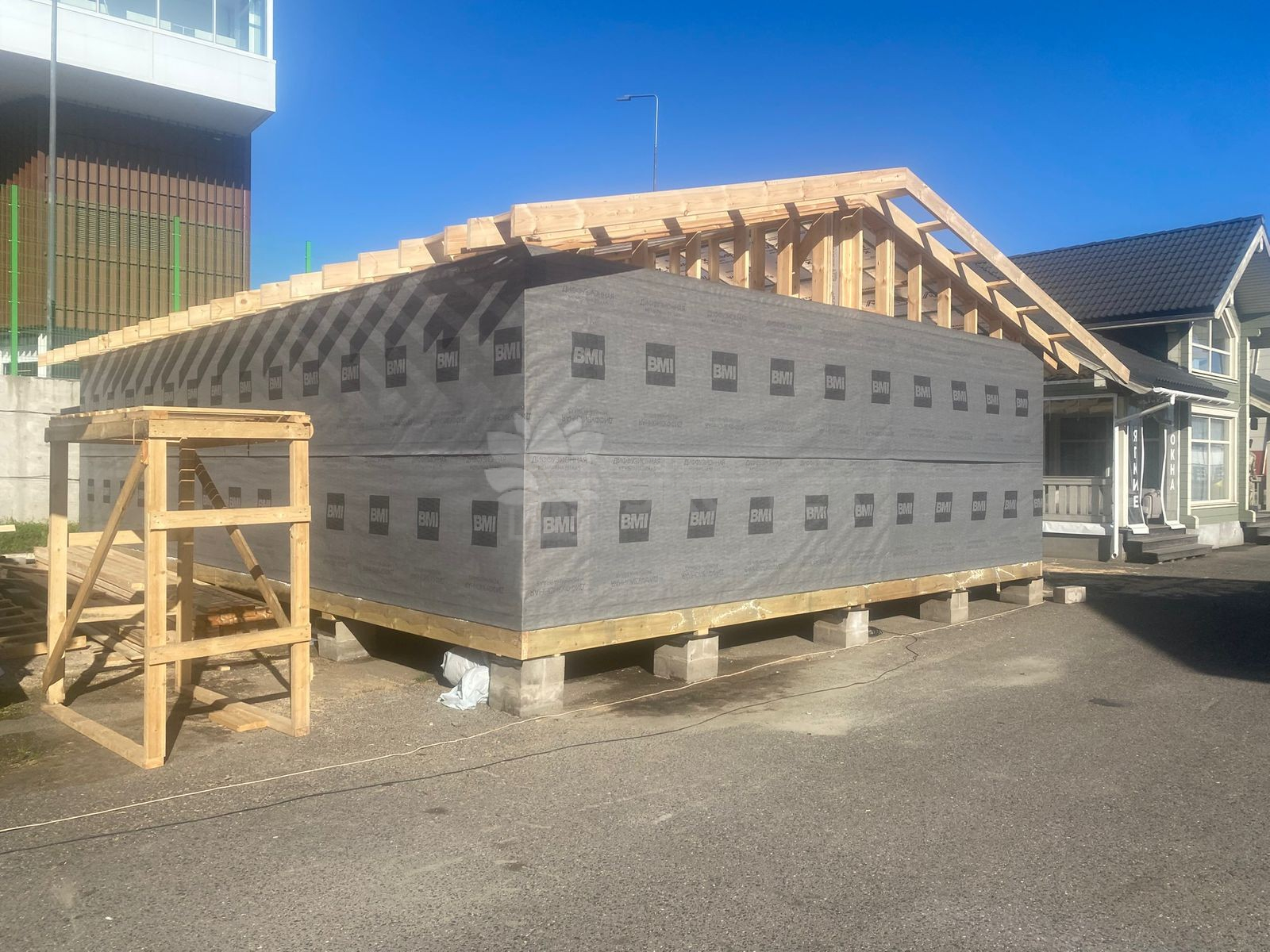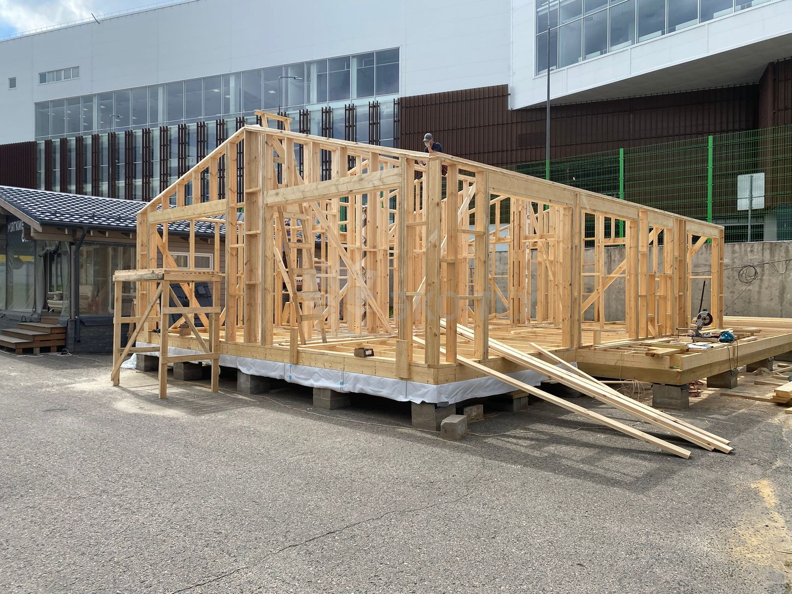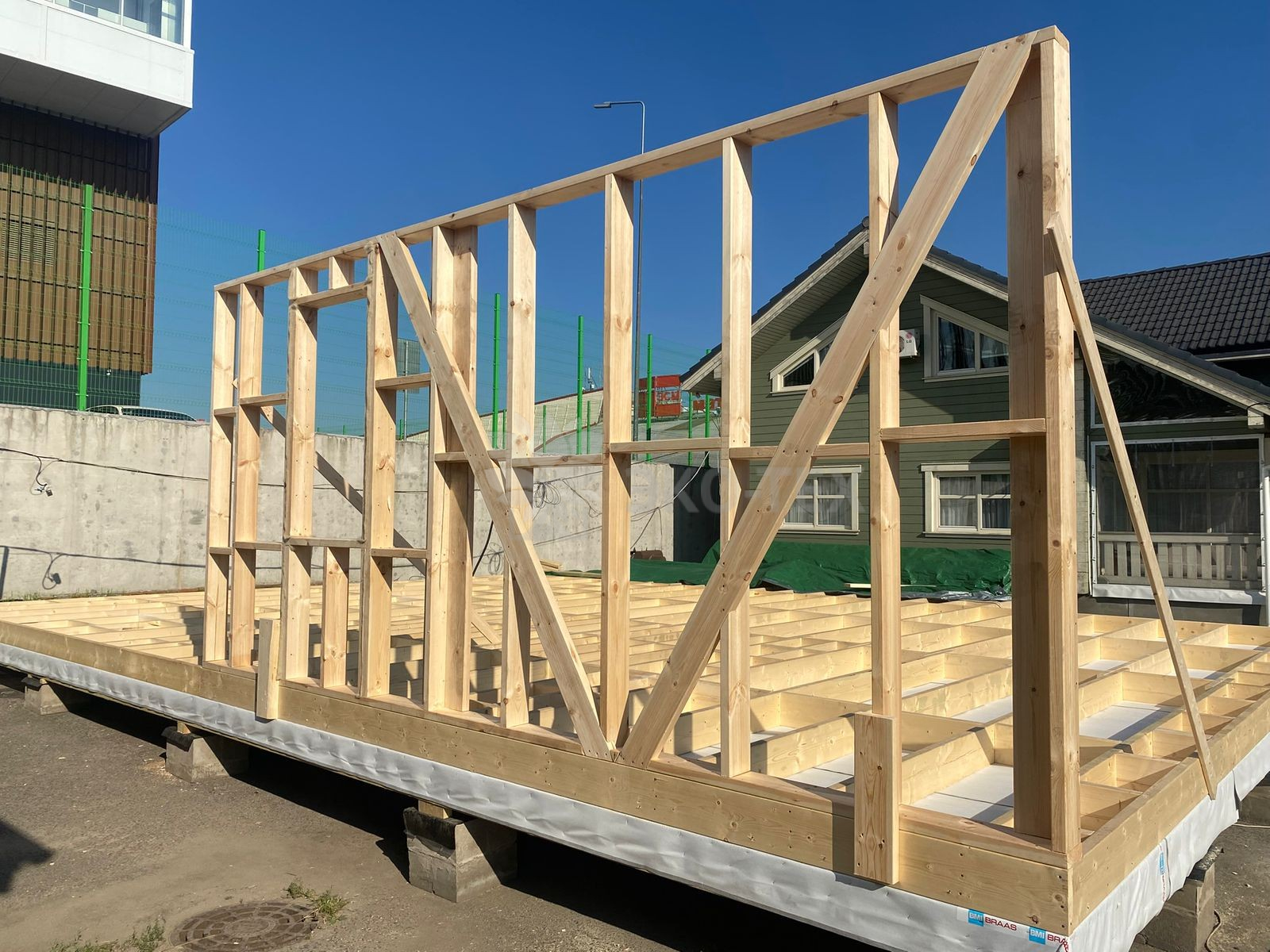 Сегодня мы подготовили для вас небольшой фотоотчёт о строительстве нового каркасного дома на нашей выставочной площадке. На этих снимках можно увидеть ключевые этапы работ: от возведения каркаса до оформления фасада.