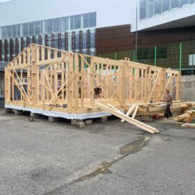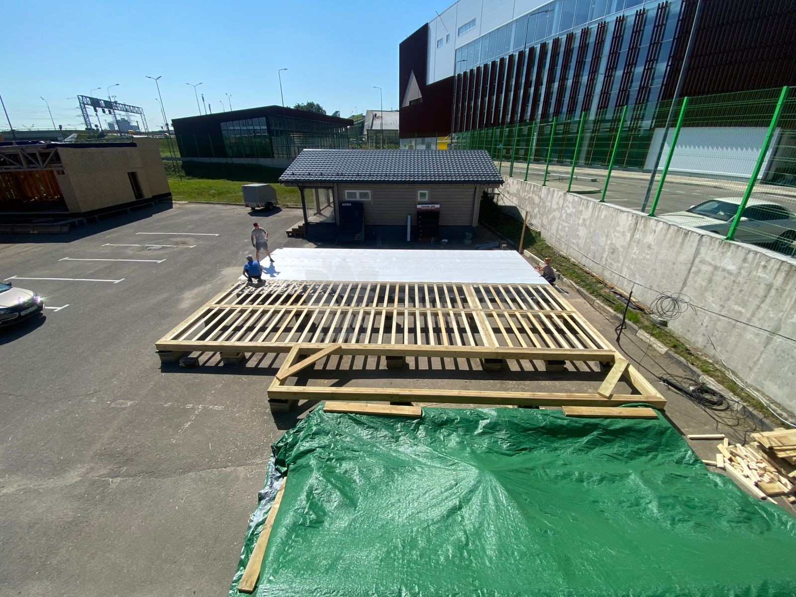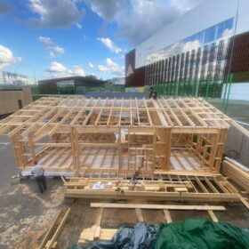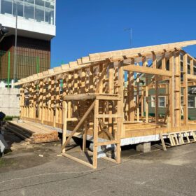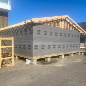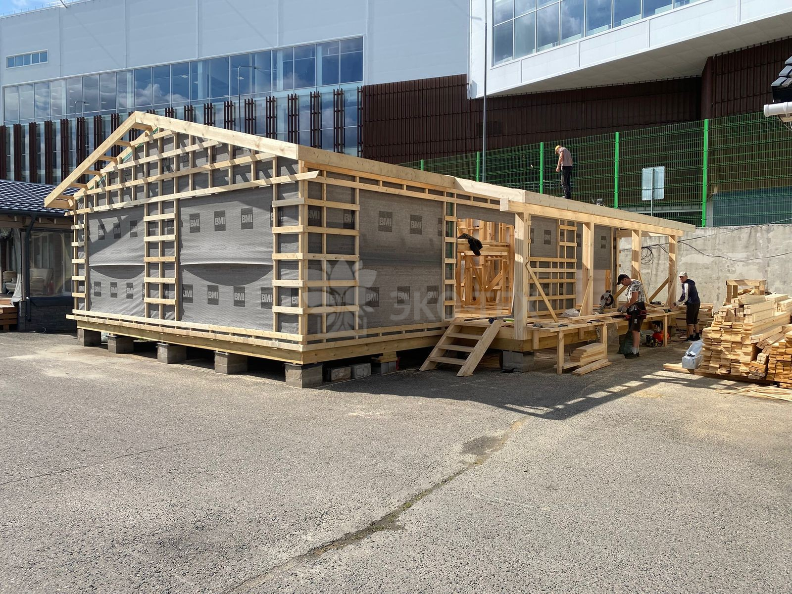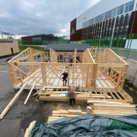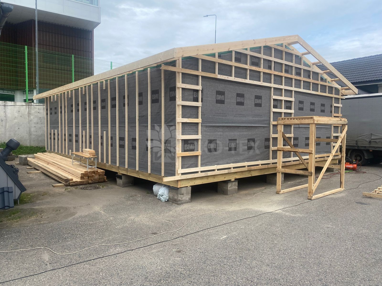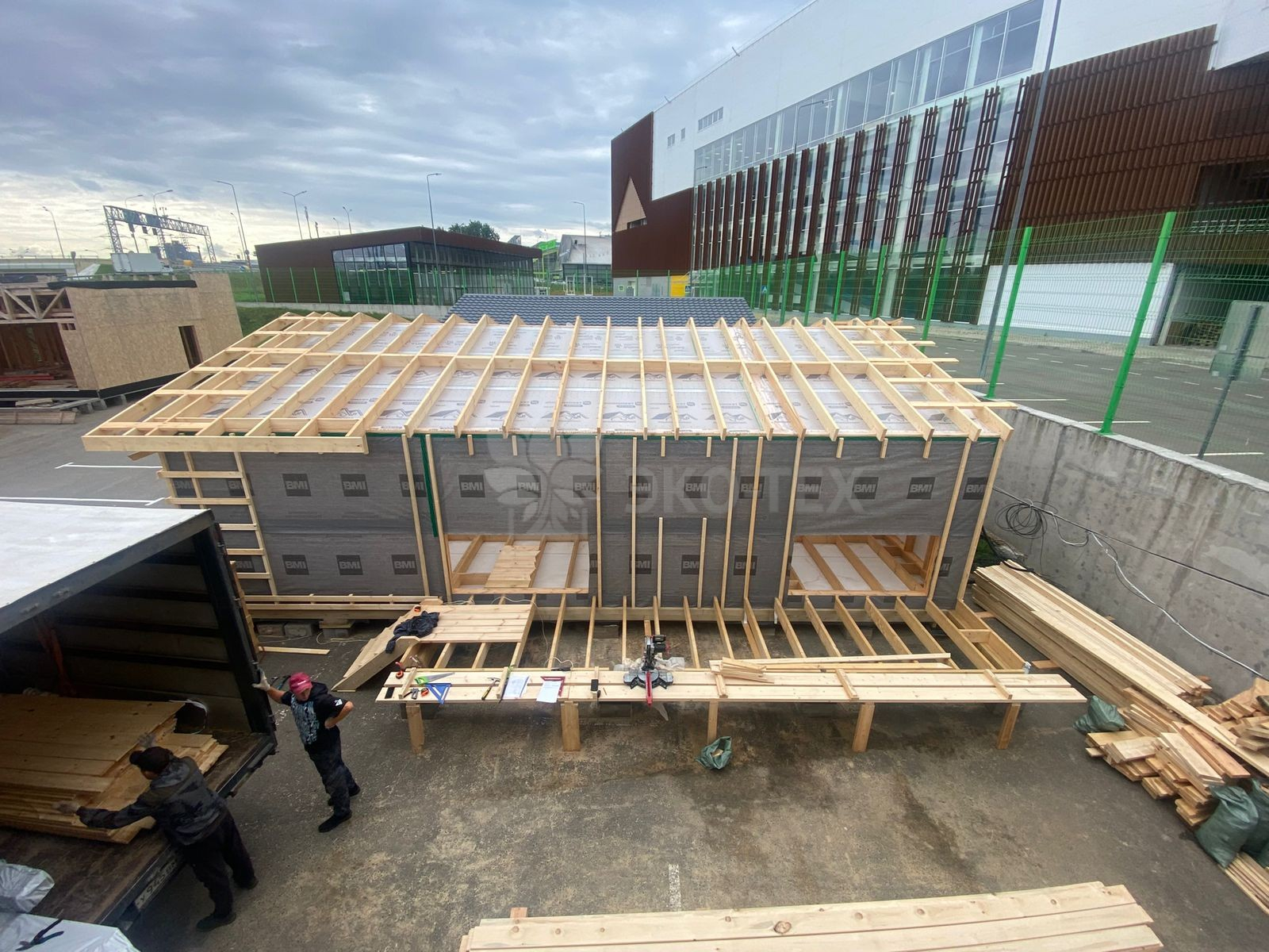Сегодня мы подготовили для вас небольшой фотоотчёт о строительстве нового каркасного дома на нашей выставочной площадке. На этих снимках можно увидеть ключевые этапы работ: от возведения каркаса до оформления фасада.