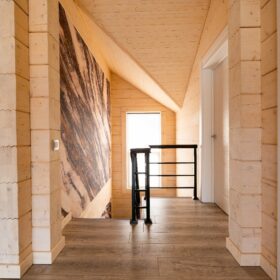 Самым главным преимуществом домов из клеёного бруса является то, что его процент усадки конструкций составляет небольшую величину. В среднем это 1-2%.
