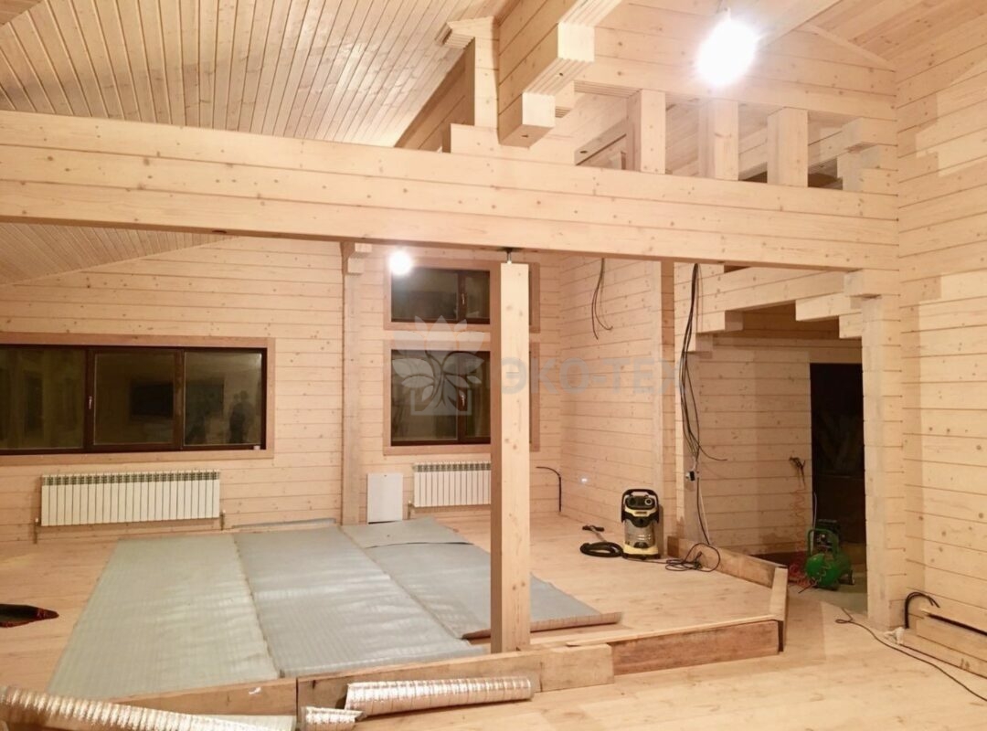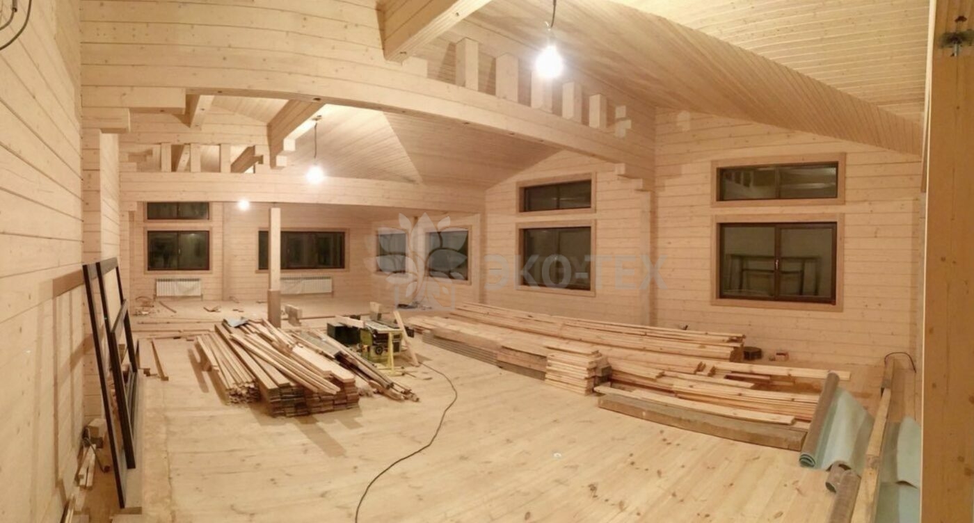 Деревянные дома требуют значительно меньше затрат на внутреннюю и внешнюю отделку, поэтому сроки на производство отделочных работ значительно сокращаются и позволяют ввести дом эксплуатацию даже раньше чем при применении камня, бетона и прочих материалов, даже несмотря на период «высыхания» бревна. А натуральный интерьер наилучшим образом поддерживает здоровый микроклимат в таком коттедже.