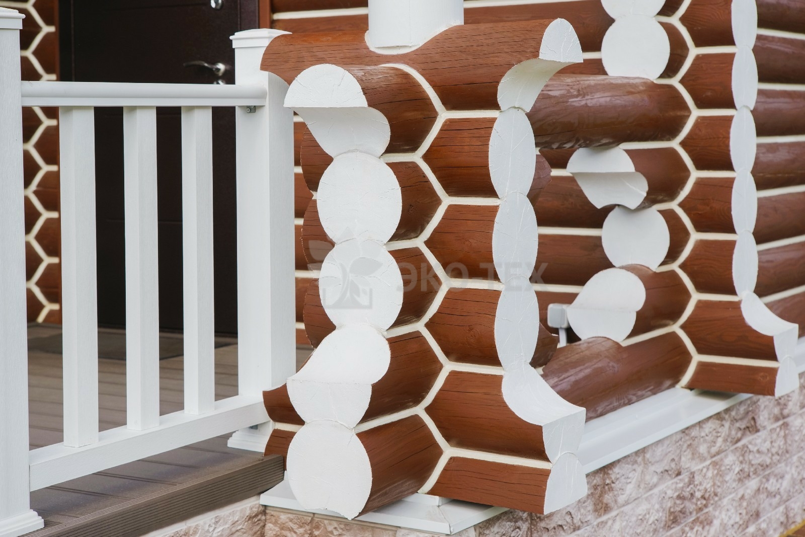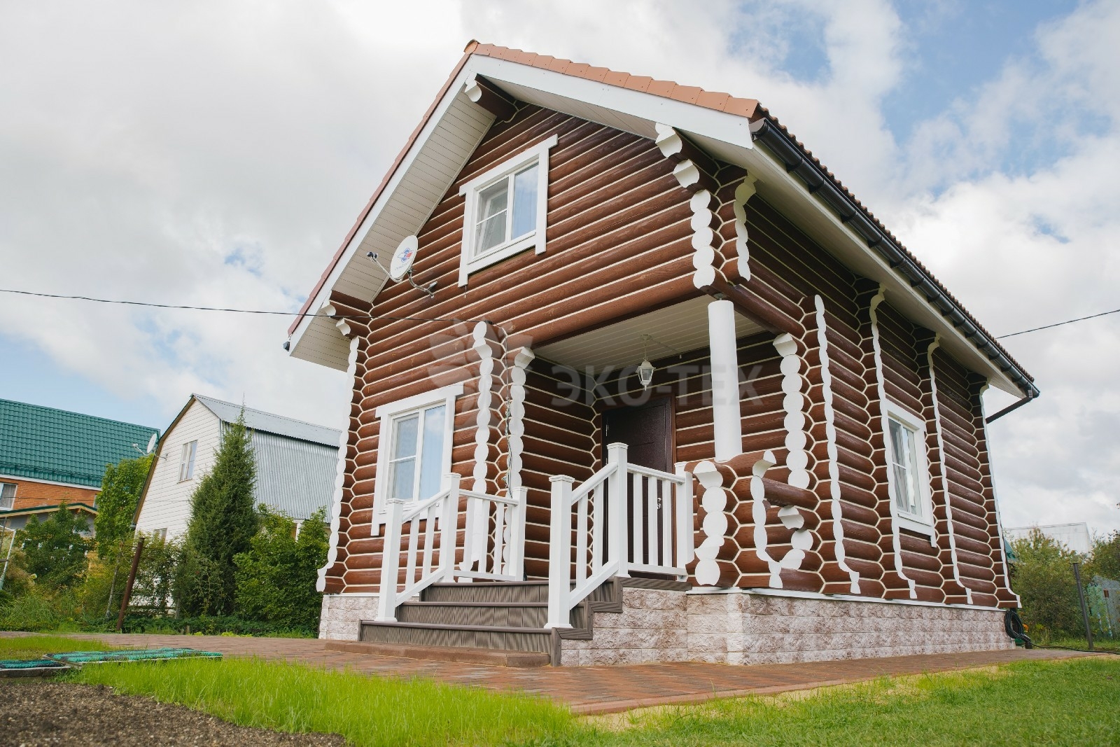Двухэтажный дом с террасой и мансардой, материал оцилиндрованное бревно