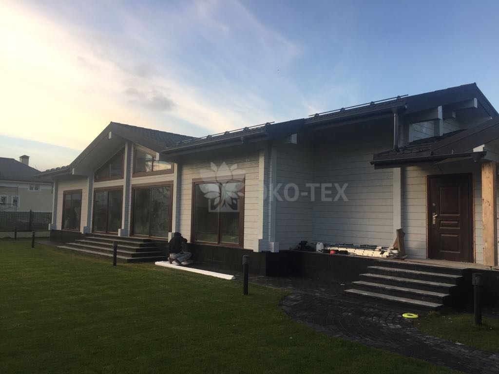 Дом с террасой и двумя балконами,материал клееный брус