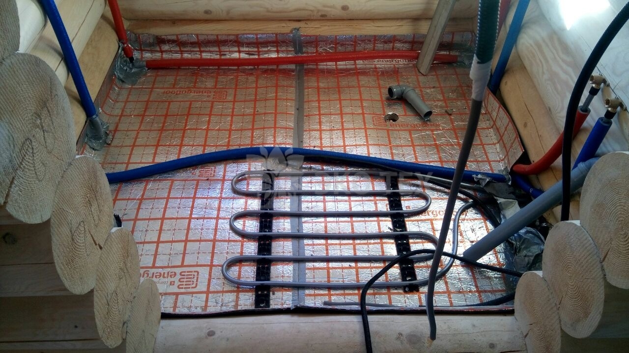 Данное устройство предполагает укладку под напольным покрытием специальных матов, которые состоят из электрических проводов. Между матами и покрытием должна быть воздушная подушка 3-5 см. В идеале, конечно, наличие стяжки из бетона. Однако, не в каждом деревянном доме возможно её выполнить. Поскольку дерево — это горючий материал, данный способ предусматривает строгое соблюдение правил противопожарной безопасности.