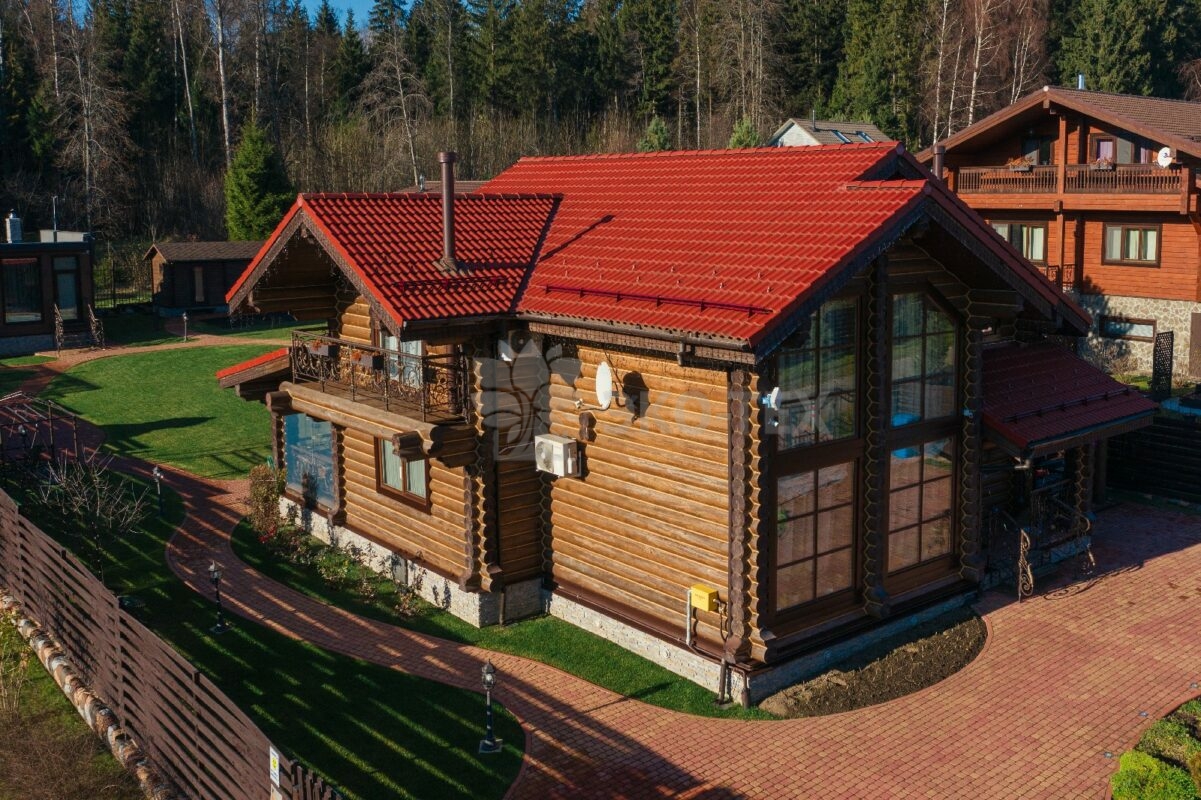 Двухэтажный дом из бревна с террасой