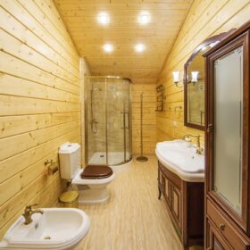 Одним из важных элементов деревянного, как и любого другого дома является водопровод и канализация. Очень важно еще на этапе проектирования решить, где будет располагаться санузел, где пройдут водопроводные трубы, чтобы в дальнейшем не возникли проблемы-конфликты с прокладкой других систем обеспечения, и чтобы не пришлось все переделывать. К вопросу места и способа установки всех инженерных систем дома нужно подходить очень серьезно, так как от правильного решения зависит срок и удобство эксплуатации.