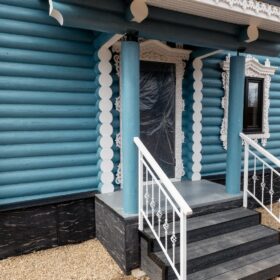 Конструкция может быть открытой или закрытой. Если площадка открытая, то её дополняют навесом и перилами. - Если же возвышения нет, то около входа делают высокие пороги, задача которых защитить внутреннее пространство от капризов погоды. Подобным образом, в доме появляется дополнительное помещение, которое раньше называлась сени.