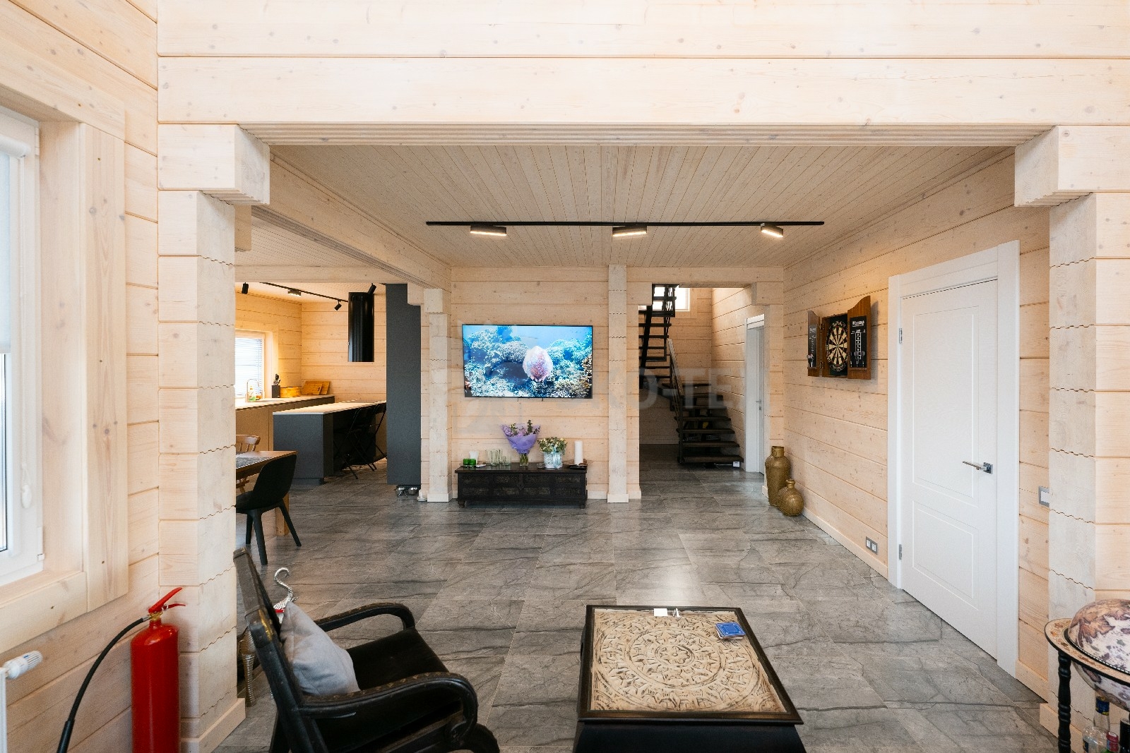 Ну и конечно же, сердце любого дома — это гостиная и, как правило, примыкающие к ней столовая — кухня.