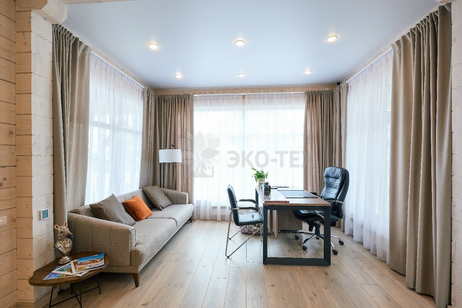 Двухэтажный дом с террасой и мансардой, материал оцилиндрованное бревно